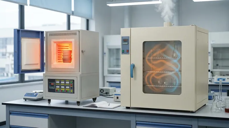 Ключевое различие заключается в их основной функции: муфельная печь предназначена для преобразования материалов с помощью равномерного высокотемпературного нагрева, в то время как сушильный шкаф предназначен для удаления влаги с помощью циркулирующего воздуха. Это различие в назначении диктует каждый аспект их конструкции, от изоляции до воздушного потока, и является коренной причиной их различных профилей распределения тепла.
